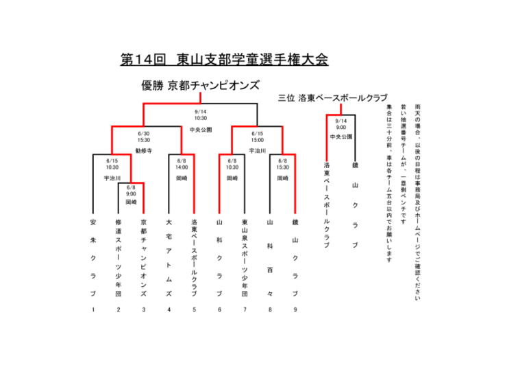京都軟式野球連盟東山支部のヘッダー